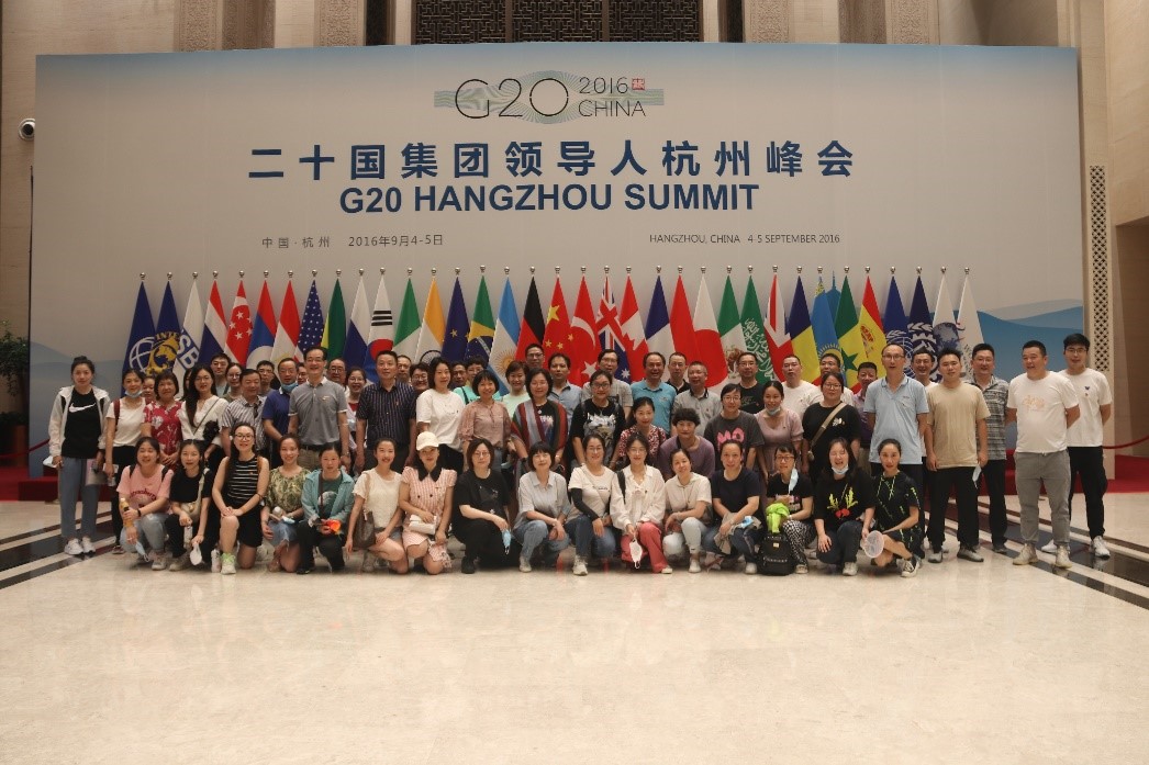 在杭州G20峰會(huì)會(huì)場(chǎng),公司黨員、骨干實(shí)地參觀了2016年杭州G20峰會(huì)主會(huì)場(chǎng)等場(chǎng)館,認(rèn)真聆聽(tīng)了場(chǎng)館講解員對(duì)G20峰會(huì)會(huì)場(chǎng)各種設(shè)施的介紹。這座在杭州國(guó)際博覽中心設(shè)計(jì)與改造完成的G20峰會(huì)會(huì)場(chǎng),體現(xiàn)出恢弘氣勢(shì)和雅正平和的特點(diǎn),我們能工巧匠秉承大國(guó)風(fēng)范、江南特色、杭州元素的總體思路,將絲綢、紗燈、木雕等頗具中國(guó)特色的江南元素融入到了設(shè)計(jì)之中,充分體現(xiàn)了「禮、合、仁」的三個(gè)主題。